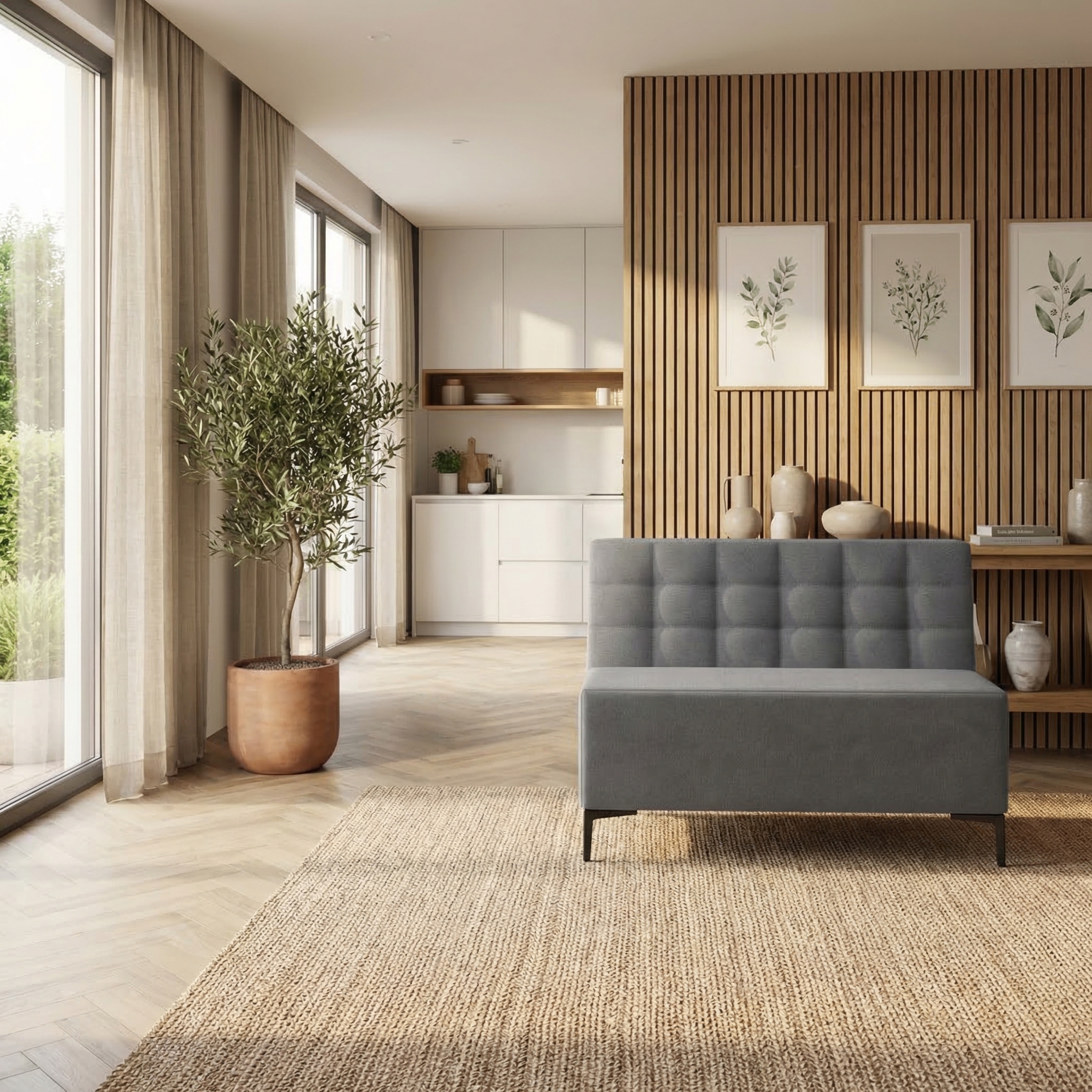 - 🧵 Mebel wolnostojący – tył narożnika obity tkaniną, dzięki czemu świetnie prezentuje się również w otwartej przestrzeni
