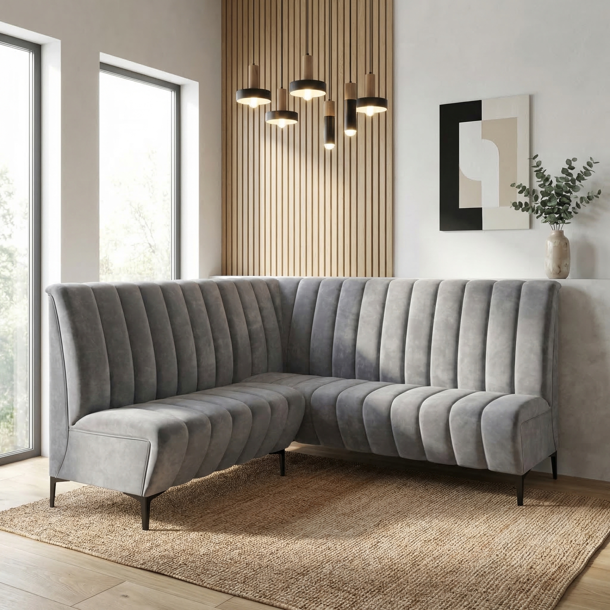 • 📏 Wykonanie na dowolny wymiar – każdy narożnik powstaje na zamówienie, dzięki czemu idealnie dopasowuje się do układu i wielkości wnętrza.