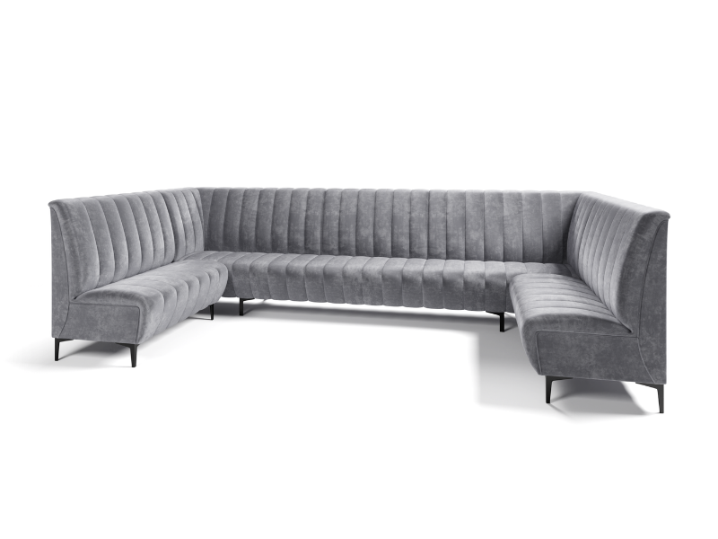 Royal - nowoczesny i elegancki narożnik do kuchni lub jadalni, wykonywany na dowolny wymiar, dzięki czemu idealnie dopasowuje się do wnętrza. Wyposażony w wysokiej jakości piankę T30, zapewnia wygodę i trwałość na co dzień. Jako mebel wolno stojący, posiada tył obity tkaniną, dlatego świetnie prezentuje się z każdej strony. Dekoracyjne pionowe przeszycia na oparciu i siedziskach podkreślają jego stylowy charakter, a metalowe nogi malowane proszkowo dodają nowoczesności i lekkości. Mocna tkanina w cenie oraz szeroki wybór kolorów i materiałów pozwalają stworzyć narożnik idealnie dopasowany do każdej aranżacji. Ergonomiczna konstrukcja z możliwością wyboru wersji prawej lub lewej zapewnia pełne dopasowanie do układu pomieszczenia.