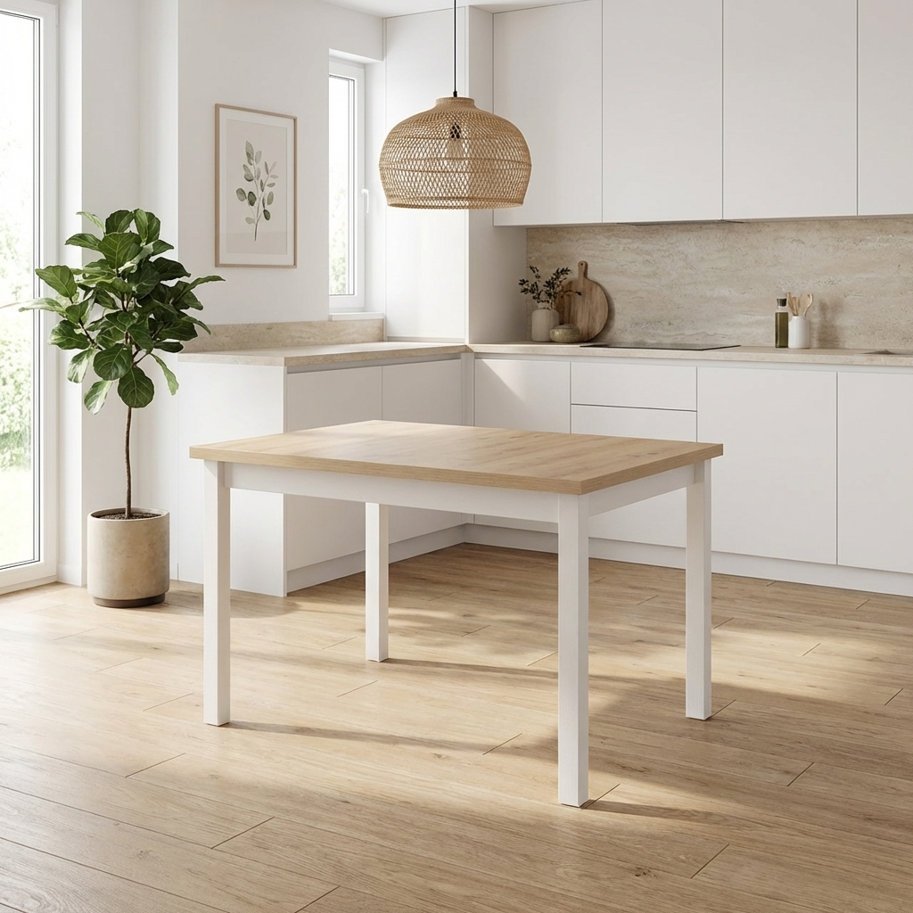 • 🌿 Ekologiczne wykończenie – bejca i lakier wodny zapewniają bezpieczne i trwałe zabezpieczenie powierzchni nóg oraz korpusu stołu