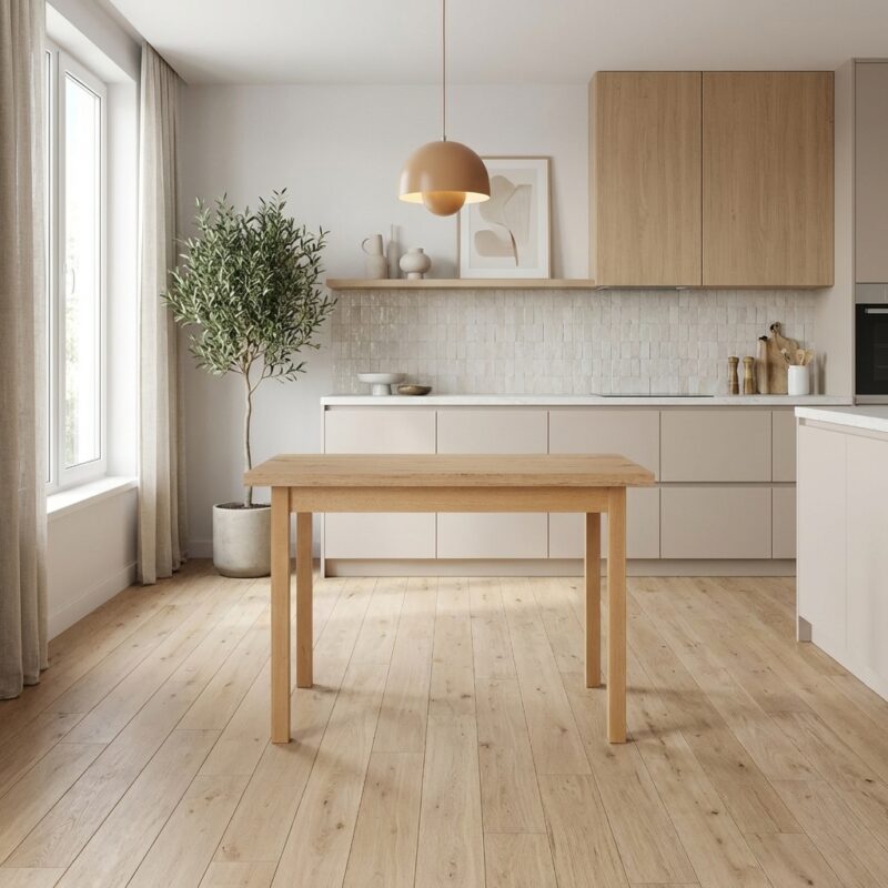 🌿 Ekologiczne wykończenie – bejca i lakier wodny zapewniają bezpieczne i trwałe zabezpieczenie powierzchni nóg oraz korpusu stołu