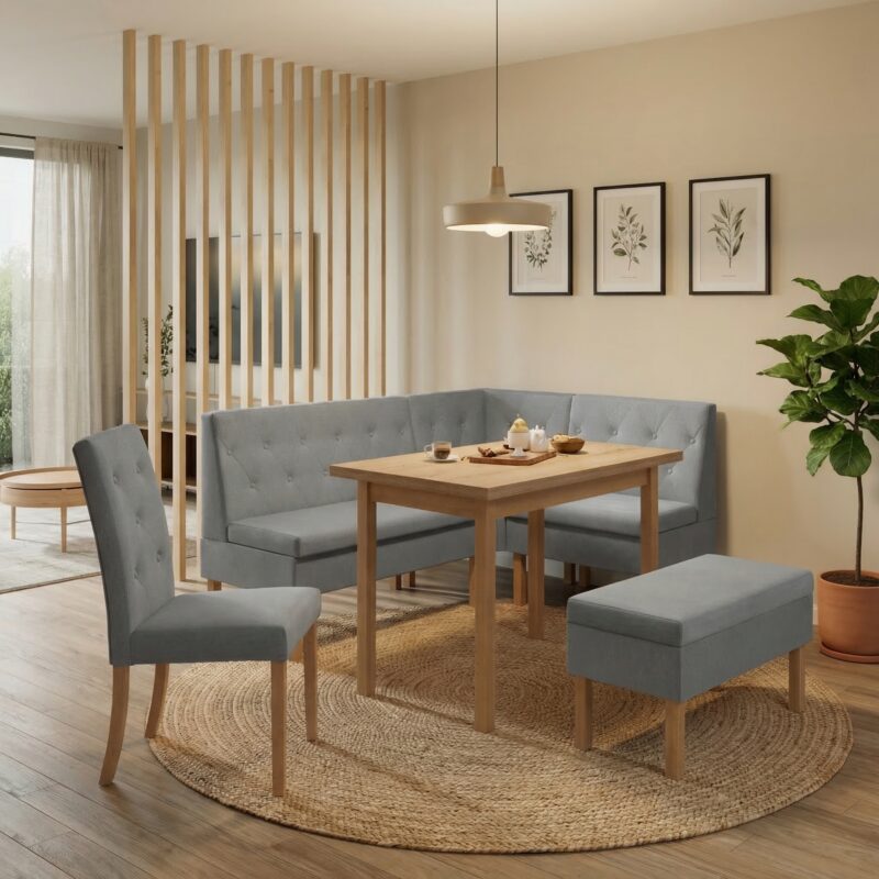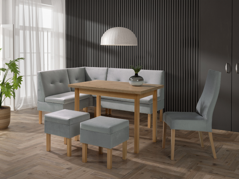 • 🏠 Idealny zestaw do kuchni i jadalni – funkcjonalne połączenie narożnika, stołu i wygodnych siedzisk do rodzinnych posiłków